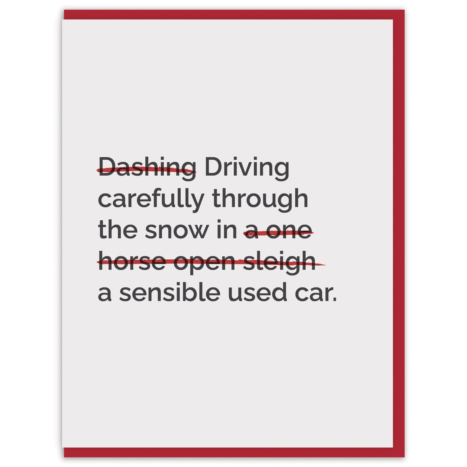 Driving carefully through the snow in a sensible used car.